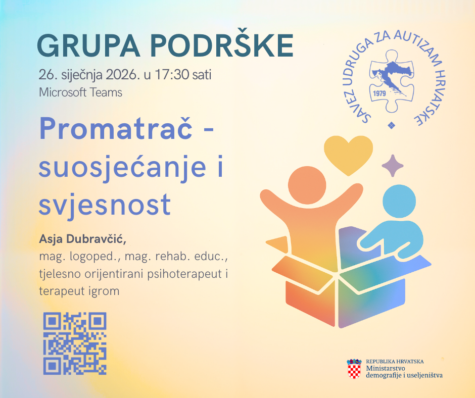 Grupa podrške će se održati u ponedjeljak, 26. siječnja 2026. s početkom u 17:30 sati putem Microsoft Teams platforme.