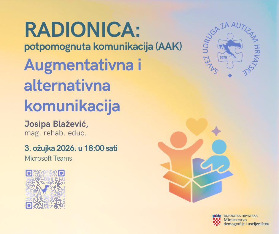 Pozivamo vas da se prijavite na drugu od pet radionica usmjerenih na razumijevanje i primjenu alternativne i augmentativne komunikacije (AAK) u svakodnevnom životu.