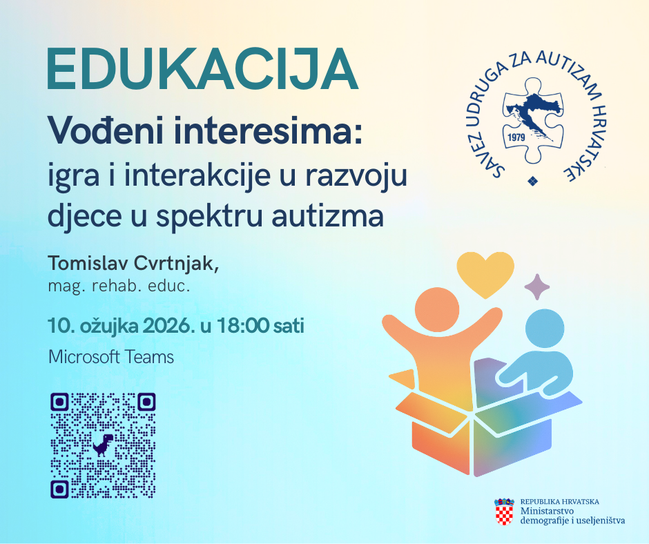 Tema druge edukacije je “Vođeni interesima: igra i interakcije u razvoju djece u spektru autizma”.