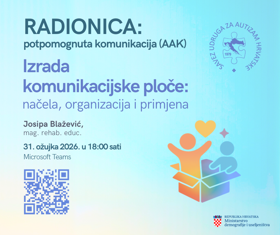 Pozivamo vas da se prijavite na treću od pet radionica usmjerenih na razumijevanje i primjenu alternativne i augmentativne komunikacije (AAK) u svakodnevnom životu.