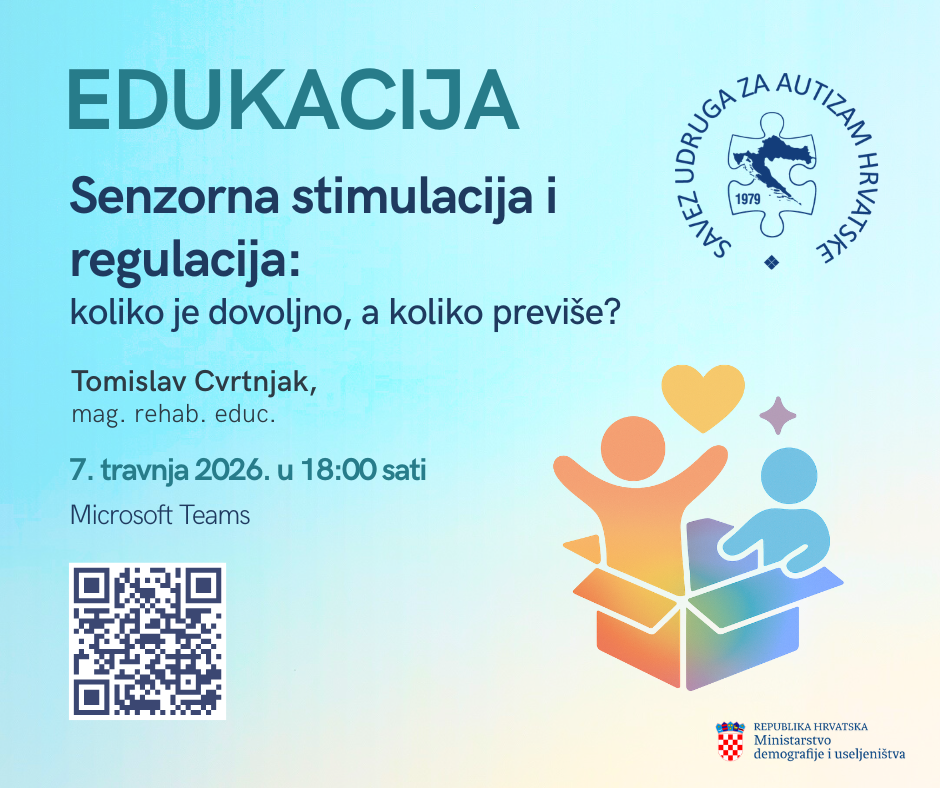 Zašto neka djeca stalno traže kretanje, dodir ili intenzivne podražaje, dok druga reagiraju povlačenjem, izbjegavanjem ili preplavljenošću? Kako prepoznati kada dijete treba više stimulacije, a kada mu je već previše? U ovoj edukaciji fokus stavljamo na razumijevanje senzorne obrade i regulacije u ranom razvoju, s posebnim naglaskom na različite obrasce reagiranja kod autistične djece. Kroz primjere iz svakodnevnih situacija, sudionici će dobiti uvid u to kako djeca doživljavaju podražaje te kako ti doživljaji utječu na njihovo ponašanje, emocije i sposobnost sudjelovanja u aktivnostima.